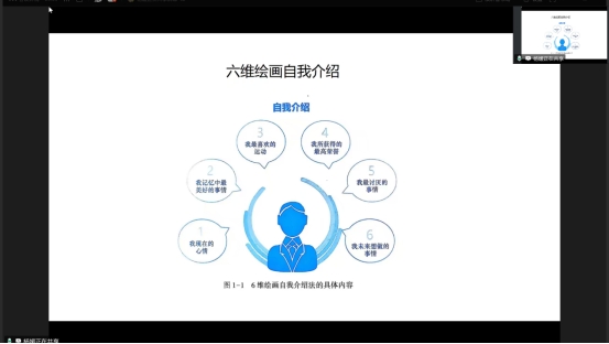 �互动环节,师生共同完�“六维绘画自我介绍”。同学们用“最喜欢的运动”“最讨厌的事情”“未来想做的事”等六把钥匙描绘自我画像;杨老师亦现场展示个人六维图,以自己兴趣诠释“热爱—能力—价值”的闭环,示范如何借助可视化工具洞察个人优势与职业取向�